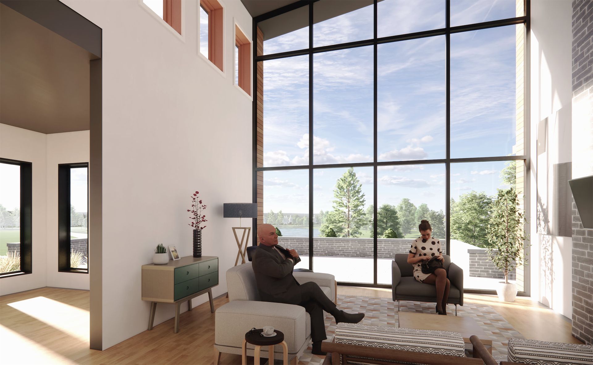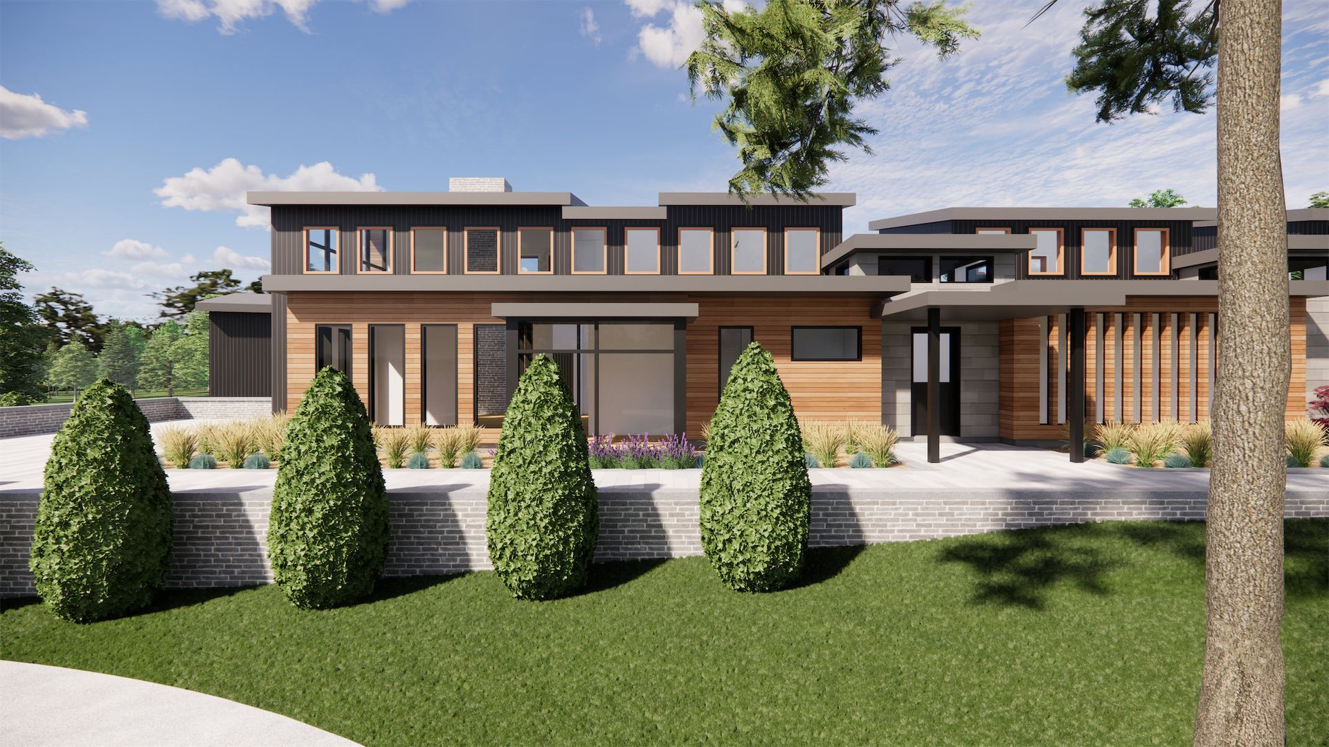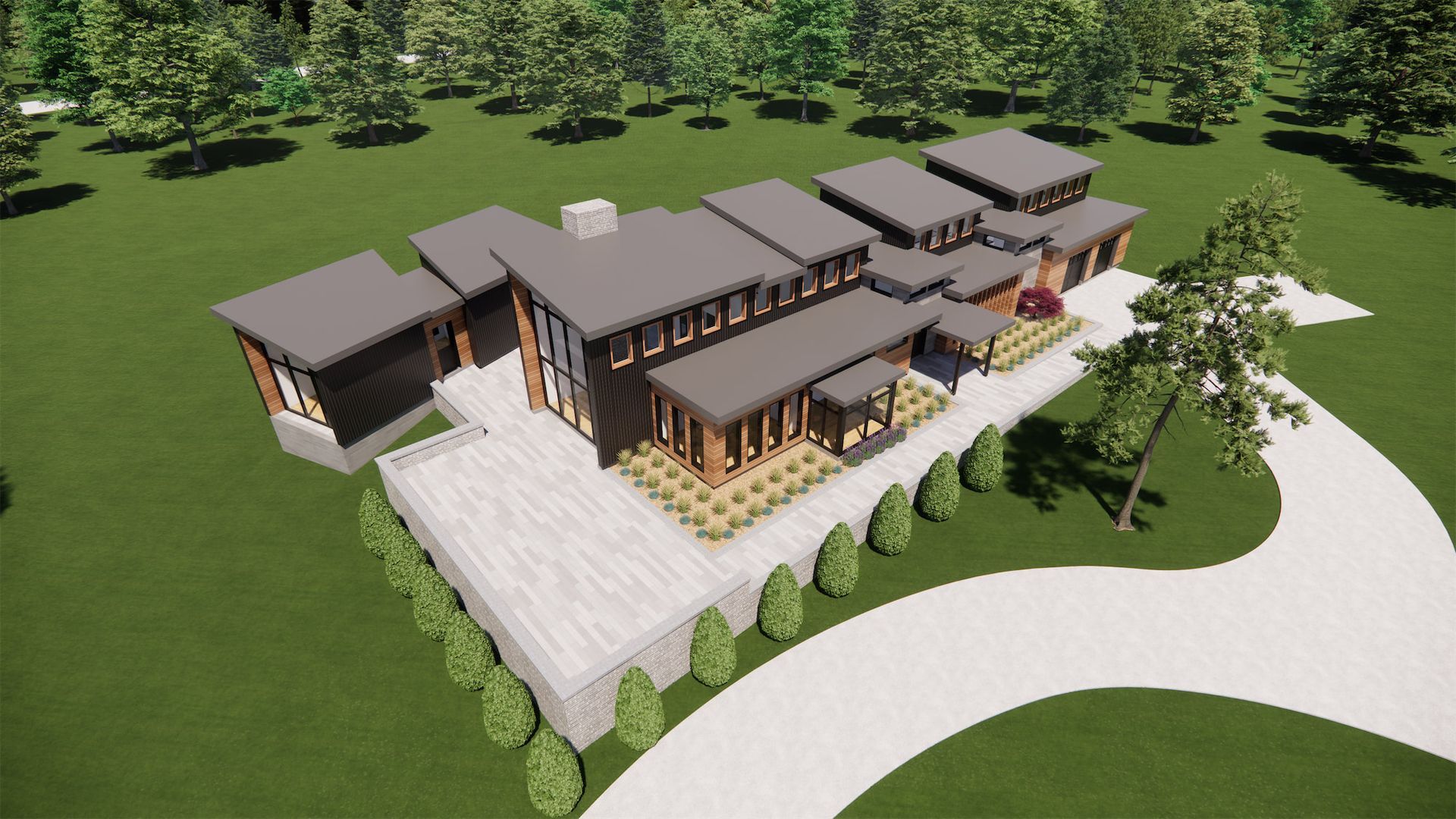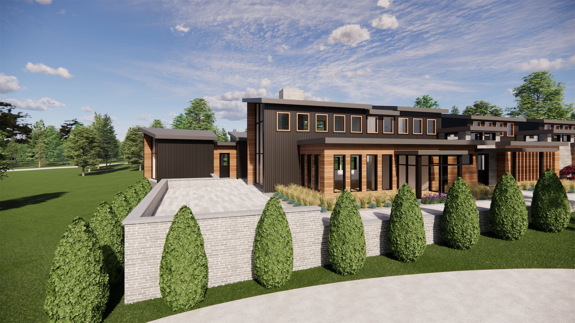 Sited ontop of a rolling hill with views down to pond below the house is designed based upon the client's lifestyle.