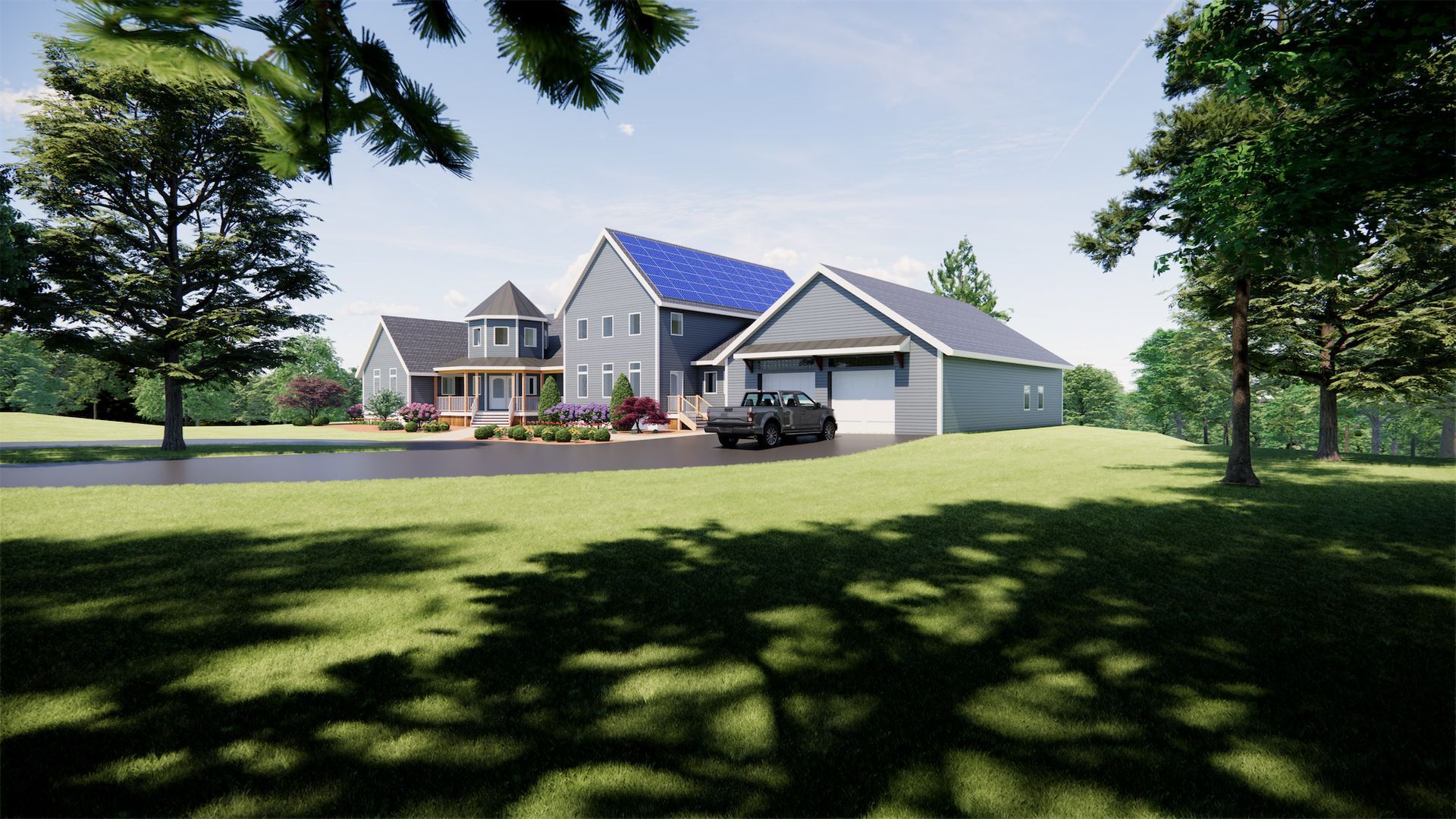 The house was designed for ideal solar orientation with solar panels and battery storage capable of providing enough power to operate the house year-round.